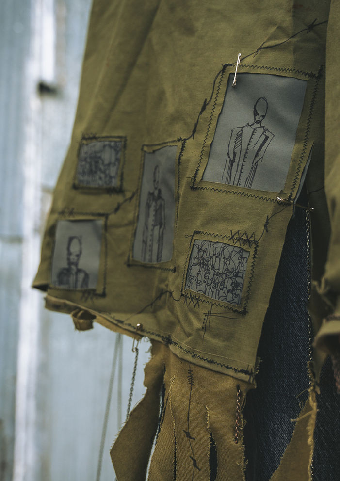 To understand one, you have to know two, and understand two you have to know one. Within ourselves we find these reflections of tension which keep us in a state of questioning. Inside these gray areas I find myself wallowing between what I have been taught and what I feel. It is this push and pull that keeps me striving for an answer of what ‘comfort’ is. For this work, I focused on my own internal reflection within androgyny. I chose a simple silhouette of a hoodie and transformed it into a flowing garment in order to disguise the wearer. I paired this with two narratives to spark the everlasting conversation of ‘who am I’ and ‘how do I choose to represent myself’.